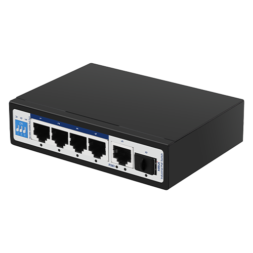 • 4 پورت RJ-45 با قابلیت گیگابیت صنعتی POE و 1 پورت Uplink گیگ اترنت و 1 پورت Uplink گیگ SFP